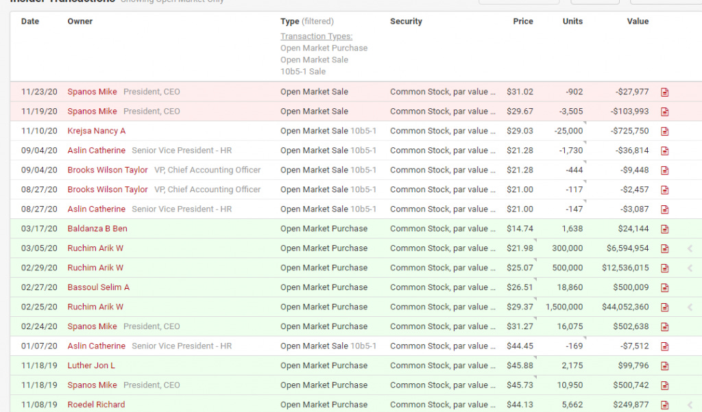 BTW- it appears I'm not the only one who is skeptical. I pulled a chart of SIX insider transactions below; I don't put too much stock in the insiders' sales (the CEO November 2020 sales, for example, seem to be more based around taxes), but I do think it's interesting that insiders were buying relatively aggressively in late February 2020 (before the impact of the pandemic became completely apparent) but were tilting more towards selling at the same or lower prices a few months later as the effects of the pandemic became apparent. Again, nothing wild or to put too much stock in here, but I do think it speaks to insiders not seeing a lot of value at prices a lot lower than today's!