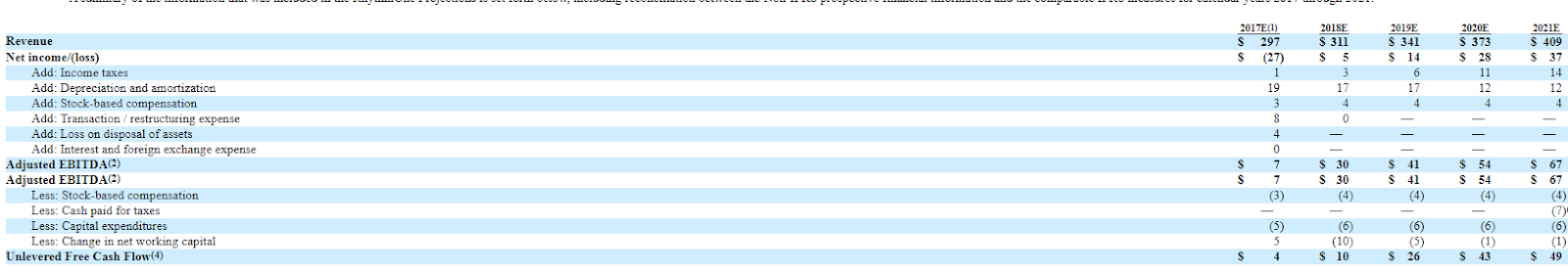 Ok, let’s now turn to the new RTHM’s fundamentals. We’ve gotten two new pieces of info since my last post: the company provided an update that said Q3 was in-line with expectations, and the company filed an update to their YUME offer that included projections for the standalone RhythymOne (excluding YUME). If you’ll recall from the original post, RTHM had bought up several smaller companies and their historical financials were a mess, so it was tough to estimate what their actual profitability level. Given that, the filing of the standalone projections for RTHM is way more important than the Q3 update (though the update is nice too), so I’ve recreated the standalone RTHM projections below.