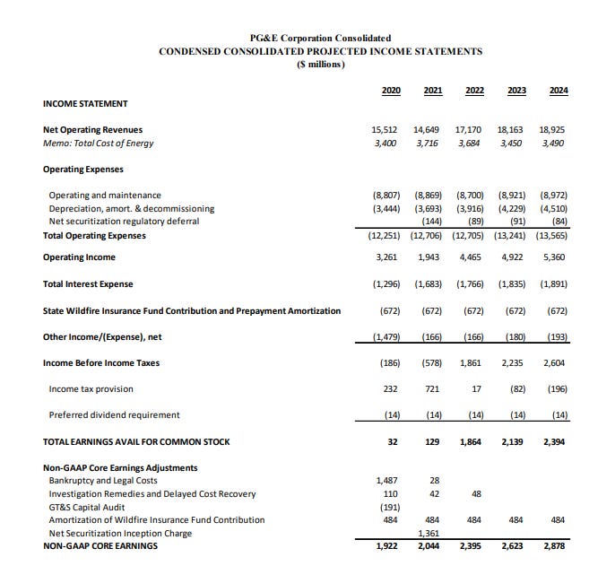 This post is another in a series I plan do on an irregular basis. A “quickie” idea is an investment specific idea that I’ve been mulling over and find interesting, but haven’t dove fully into yet. The hope with this particular idea is to provide the jumping off point for a discussion of an idea I find extremely interesting right now, as I suspect the opportunity could be fleeting but it's liquid enough that just about anyone could participate at any size. The idea? Buying PG&E (PCG) as it prepares to emerge from bankruptcy. Some quick background: PGE owns California's largest electric utility. They filed for bankruptcy in early 2019 due to huge liabilities related to California wildfire victims. Fast forward to today, and the company is prepping to emerge from bankruptcy in July (I believe July 1 is the exact date). The basic thought here is that, as part of their bankruptcy filings, PG&E provided forward financial projections. Basically, ignoring bankruptcy costs, they plan to earn >$2B in 2021. After all of their equity raises as part of the bankruptcy filing, PCG will have 2.15B shares outstanding (see p. 2), so EPS will be ~$1/share and (hopefully!) growing. At today's share price of ~$9/share, that puts PCG at ~9x P/E.
